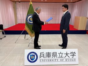 減災復興政策研究科M2の稲澤遥樹 君(浦川研究室)は、「地域防災力向上を目的とした多岐にわたる継続的な防災啓発活動を実施。メディアにも取り上げられ本学の名声を高めたものである。地域貢献に資する取組と評価し、本年度の採択」との理由で、今年度の奨励状が高坂学長から授与されました。おめでとうございます。