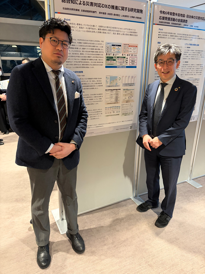 防災科学技術研究所、令和7年度の成果発表会が2月25日(水)東京国際フォーラムにて開催され、永野教授が参加しました。今年度は「オールフェイズに対応した防災科学技術~人と社会の安全保障への貢献~」 をテーマに、研究所の最新の研究成果や取り組みが詳しく紹介されました。休憩時間に開催されたポスターセッションにおいて、ポスター発表も聴講しました。